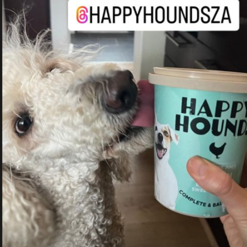"healthy tasty dog food with options of treats and extras. My Ridgeback loves her food and her coat returned to its shiny healthy condition. She was diagnosed with a possible protein allergy whilst on kibbles, but there is no sign of her previous symptoms on Happy Hounds, despite her munching away on succulent lamb and beef... Thank you Happy Hounds!"