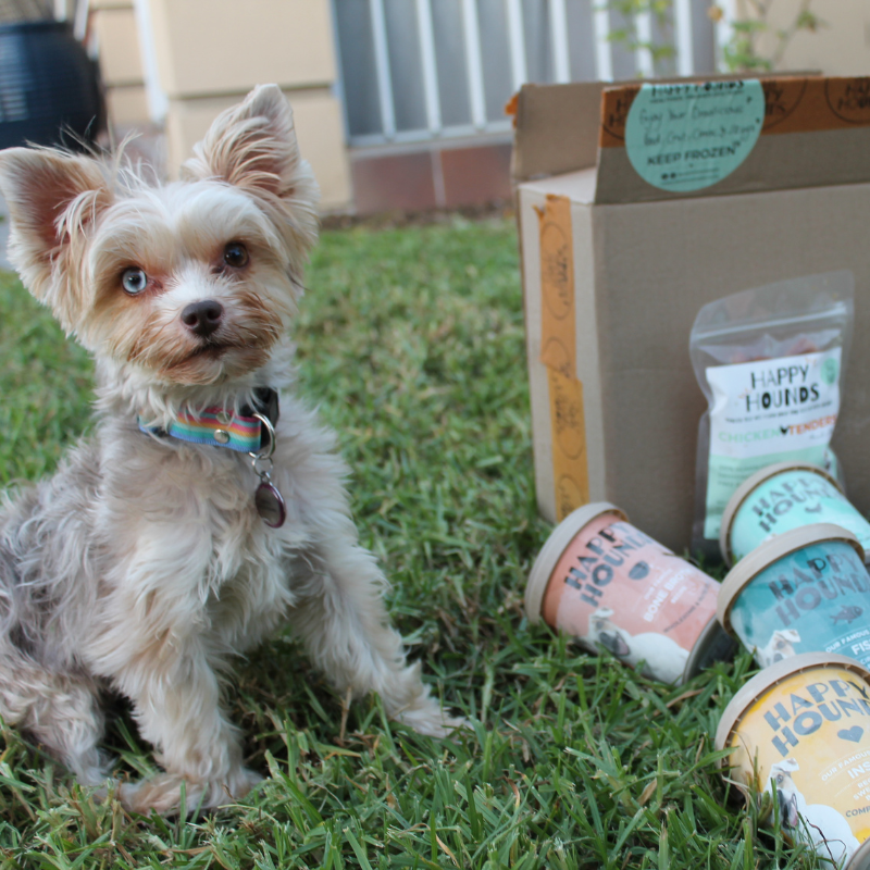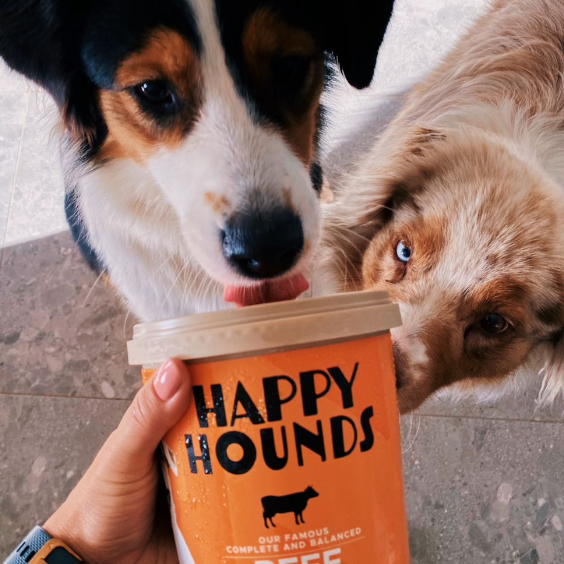 "Beautiful sheen on her coat, a bounce in her step, ever since she has been eating Happy Hounds delicious meals.... so HAPPY I have came across your brand :)"